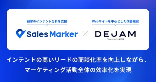 国内初※1のインテントセールスSaaS『Sales Marker(セールスマーカー)』を開発・提供する株式会社Sales Marker(本社:東京都港区、代表取締役CEO:小笠原 羽恭、以下:当社)は、Webサイト改善プラットフォーム『DEJAM』を提供する株式会社LeanGo(本社:東京都目黒区、代表取締役:平井 翔吏、以下:LeanGo)との連携プランの提供を開始いたします。