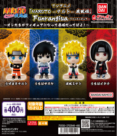 ラインナップはうずまきナルト、うちはサスケ、波風ミナト、うちはイタチの全4種です。