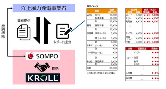 算定にあたっては、インフレ指数、国際的な設備単価データ、為替動向、税制の変化などを反映し、現在の市場環境を踏まえた評価を行います。グローバルで洋上風力発電所の評価実績を有するKROLL※と提携し、その知見と損保ジャパンおよびSOMPOリスクの専門性を組み合わせることで、信頼性の高い評価を実現します。