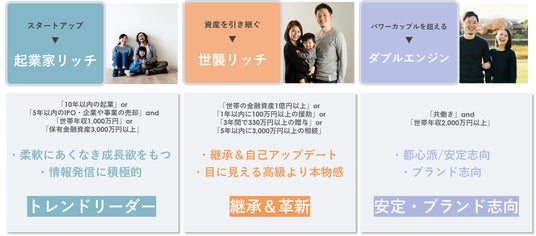 株式会社 読売広告社(本社:東京都港区 代表取締役社長:菊地英之、以下 YOMIKO)は、20代~40代の若年富裕層を新たな消費をけん引する「令和リッチ」と定義し、「起業家リッチ」「世襲リッチ」「ダブルエンジン」と3つのカテゴリーに分類をして、2021年から最新の動向を探る調査を実施しています。第3弾となる今回は、消費をはじめ、保有資産、可処分所得、投資先、子ども教育や移住先などについて調査をしました。調査結果からみえてきた令和リッチの消費行動、資産・可処分所得の変化を紹介します。