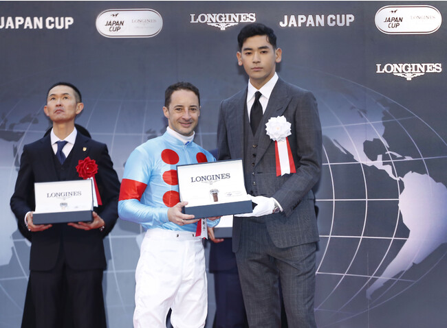 190年以上の歴史を誇るスイスの時計ブランド『ロンジン』がオフィシャルパートナー 兼 タイムキーパーを務めた「ジャパン・オータムインターナショナル ロンジン賞 第43回ジャパンカップ(GI)(国際招待)」が、2023年11月26日(日)に東京競馬場にて開催されました。歓喜に沸く8万5866人の大観衆の前でレースを制したイクイノックスを称え、ロンジンのアンバサダーであるUTA氏が、クリストフ・ルメール騎手、馬主、調教師ら、イクイノックス関係者にロンジンの腕時計を贈呈しました。
