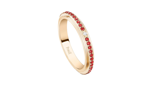 「ポセション」リングのシグネチャーであるハーフムーンセッティングのダイヤモンドを、ホワイトゴールド、ピンクゴールドの地金にそれぞれ1粒づつ配したリング、ピンクゴールドの地金に8粒のダイヤモンドを配したリング、そして1粒のダイヤモンドと共にルビーを配したリングの計4本が登場します。パートナーとのシェアリングとしても最適な華奢なデザインのリングは、1本でのコーディネートはもちろん、重ね付けでのアレンジも楽しめます。