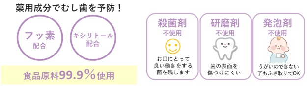 ・有効成分(フッ化ナトリウム)でむし歯を防ぐ