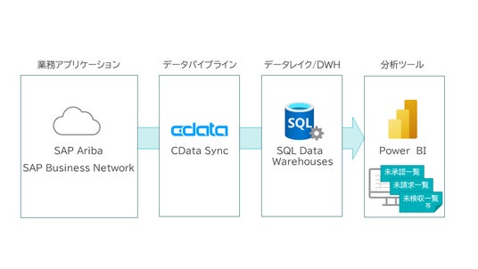 SAP社の「SAP Ariba」「SAP Business Network」から、APIを利用して、リアルタイムにデータを抽出後、データベースに格納します。それを自由に分析できる基盤を提供し、高度な調達購買業務を支援します。API 連携部分にはコネクタのグローバルリーダーであるCData Software のCData Drivers for SAP Ariba およびCData Sync などを採用しています。本ソリューションを用いることにより、短期間で「必要なときに必要なデータを抽出する」基盤を確実に構築できます。