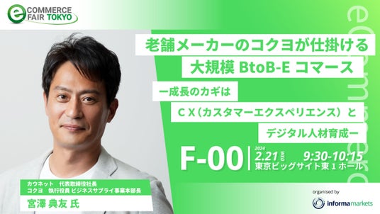 インフォーマ マーケッツ ジャパン株式会社(東京都千代田区、代表取締役社長:クリストファー・イブ)は、2024年2月21日(水)・22日(木)に、EC/通販業界専門のビジネスイベント「イーコマースフェア 東京 2024」を東京ビッグサイトにて開催いたします。参加企業は約200社を予定しており、約120講演開催するセミナーには業界のリーディングカンパニーが多数登壇します。