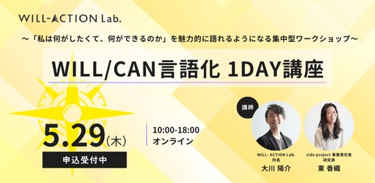 5/29、6/13開催『キャリアの軸を見つける<WILL/CAN言語化 1DAY講座>』