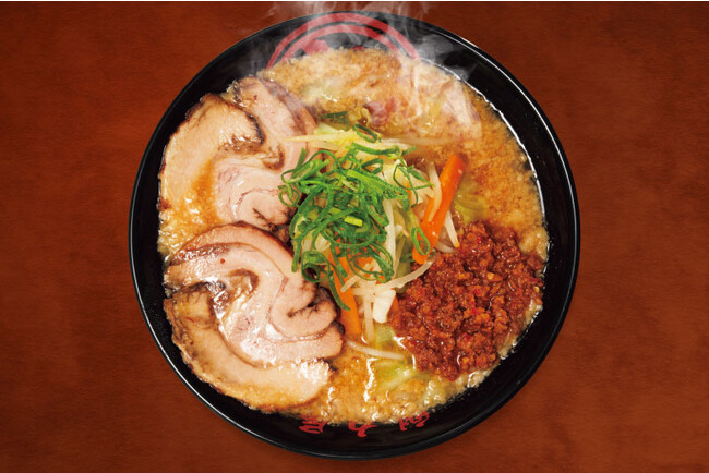 また食べ応え抜群の豚バラチャーシューとピリ辛肉ミンチの旨味が溶け出した濃厚スープが専用のちぢれ麺に絡みつき、更に食欲を掻き立てます!