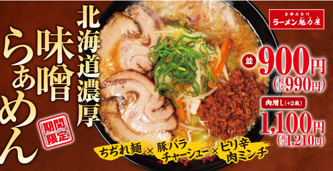 京都北白川ラーメン魁力屋をチェーン展開する株式会社魁力屋(http://www.kairikiya.co.jp本社:京都市中京区、代表取締役社長:藤田 宗、以下魁力屋)は、2023年12月6日(水)より、「北海道濃厚味噌らぁめん」を期間限定で販売開始いたします。