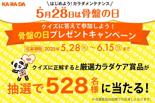 整体×骨盤サロン「カ・ラ・ダ ファクトリー」(以下 カラダファクトリー)を展開する株式会社ファクトリージャパングループ(本社:東京都千代田区、代表取締役社長:高橋 健介、以下 ファクトリージャパン)は、2025年5月28日(水)より、クイズに答えて参加しよう!骨盤の日プレゼントキャンペーンを実施いたします。