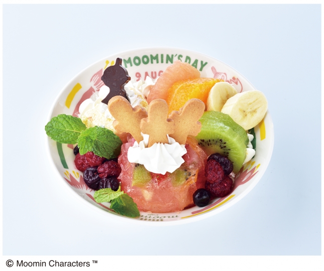 2017年ムーミンの日限定の陶器のボウルが付いてくる、夏らしい爽やかなフルーツたっぷりのデザートや、ひんやり美味しいイチゴ味のスノーアイスの「MOOMIN'S DAY スーベニアデザート(1,500円・税別)」などを提供いたします。