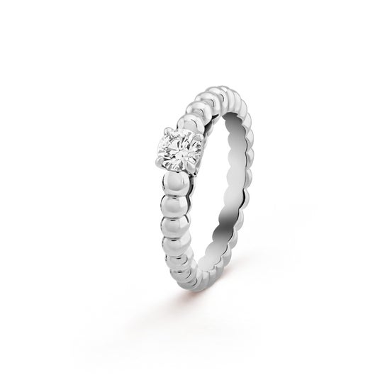 コレクションには、繊細なハーモニーを描くダイヤモンドのリボンが、センターダイヤモンドを囲むように曲線を描く「クチュール ソリティア」をはじめ、メゾンを象徴する美学であるゴールデンビーズを讃えた「ペルレ ソリティア」や、18Kゴールドとダイヤモンドが洗練された光のアンサンブルを奏でる「フェリシテ エタニティリング」など豊富なセレクションが並びます。