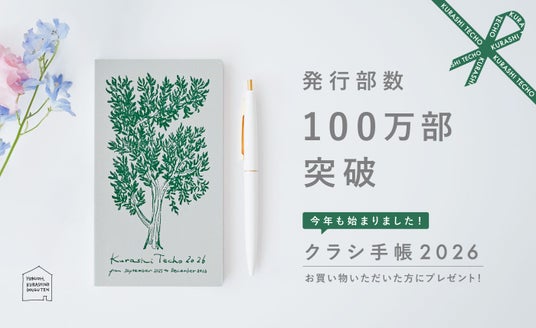 株式会社クラシコム(本社:東京都国立市、代表取締役社長:青木耕平、以下「当社」)が提供する「北欧、暮らしの道具店」(https://hokuohkurashi.com/ )は、2017年より毎年、商品購入者に無料配布しているオリジナル手帳「クラシ手帳」の累計発行部数が100万部を突破したことをお知らせいたします。あわせて、本日2025年8月18日(月)より、最新となる「クラシ手帳2026」の配布を開始いたします。