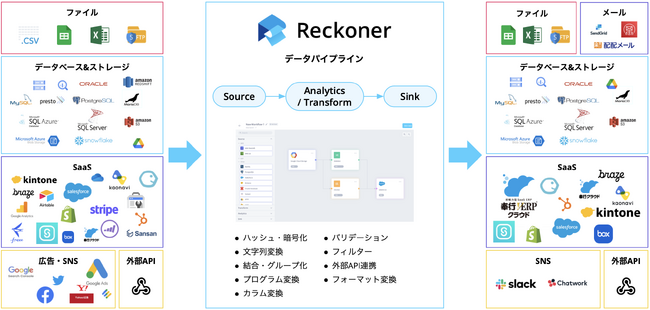 Reckoner はノーコード型 ETL、データパイプラインサービスです。