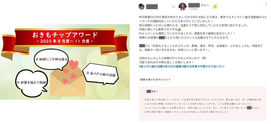 当アワードは、Unipos社のピアボーナス(R)を軸とする全社参加型カルチャープラットフォーム「Unipos(ユニポス)」導入企業のなかから、“全社参加型の組織風土づくり”を推進し、実際に組織変革に成功した企業や、成功の兆しが見えた企業に贈られるものです。