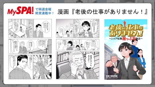 漫画『老後のしごとがありません!』は、漫画・齋藤邦雄、原案・シニアジョブで、5月3日よりMySPA!で絶賛連載中