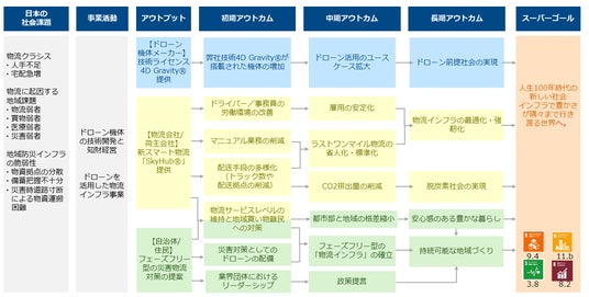 SkyHub(R)の導入は、無人化、無在庫化を促進し、ラストワンマイルの配送効率の改善という物流面でのメリットだけでなく、新たな物流インフラの導入であり、物流2024年問題に直面する物流業界において、物流改革という側面から人口減少、少子高齢化による労働者不足、特定過疎地の交通問題、医療問題、災害対策、物流弱者対策等、地域における社会課題の解決に貢献するとともに、住民の利便性や生活クオリティの向上による住民やコミュニティの満足度を引き上げることが可能になり、地域活性化を推進するうえでも有意義なものといえる。