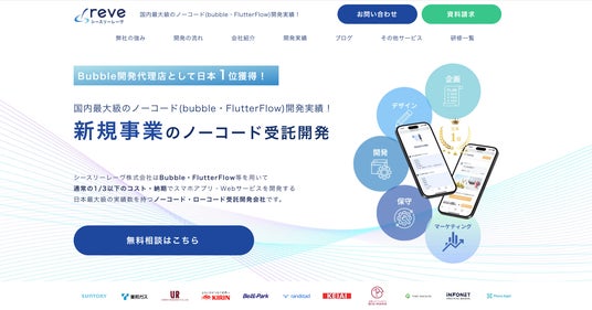 シースリーレーヴ株式会社は、Bubble・FlutterFlowなどのノーコード開発を行う、日本最大級のノーコード受託開発会社です。