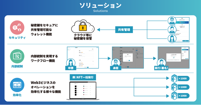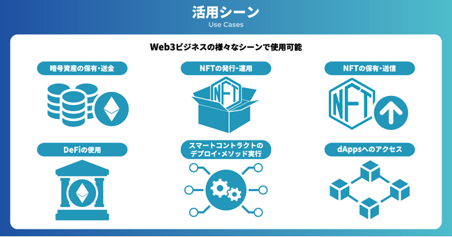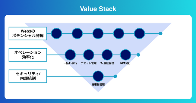 今後さらに、秘密鍵管理のセキュリティ/内部統制を強固にする機能やWeb3ビジネスのオペレーションを効率化する機能を充実させることで、Web3領域に企業がスムーズに参入し、効果的にビジネスを行える環境づくりを目指してまいります。