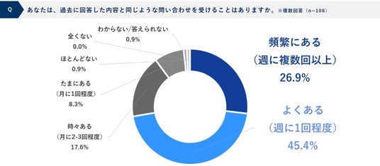 72.3%が「週に1回以上」、過去に回答した内容と同様の問い合わせを受けていることが明らかになりました。