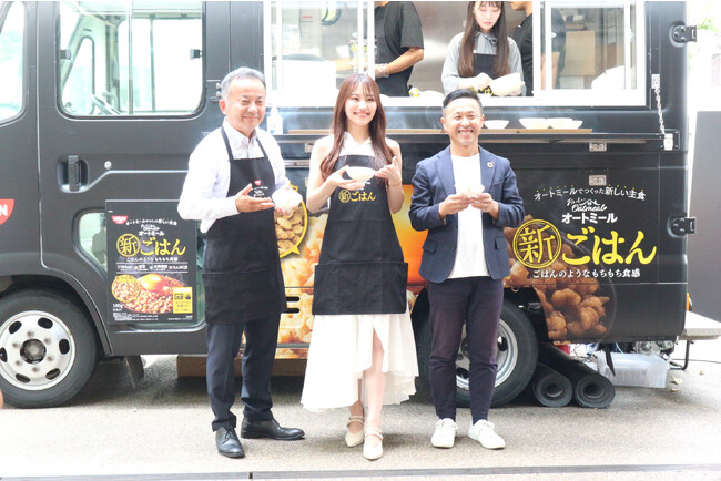 その後、新商品のプロモーションにも起用する、SNSの総フォロワー数350万人を超えるダイエットインフルエンサーのなるねぇさんを特別ゲストとしてお迎えし、9月末~11月末の期間、全国20箇所で展開するキッチンカーのお披露目とトークショーを実施しました。
