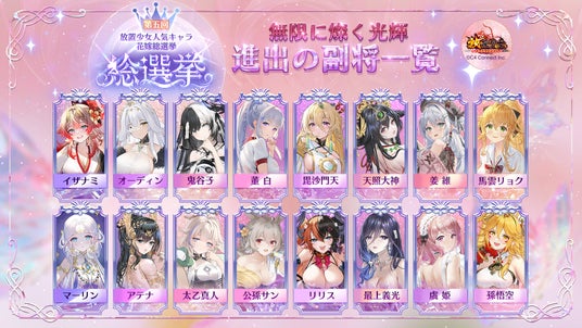 C4 Connect株式会社(本社:東京都渋谷区)は、現在サービス中の美少女RPGゲーム『放置少女~百花繚乱の萌姫たち~』(スマートフォンアプリ及びブラウザ版)(以下、『放置少女』)にて開催中の「第五回放置少女人気キャラ総選挙」段階2.『絢爛たる反響』の投票結果を発表いたします。