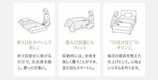 近年、分厚いコイルマットレスや和布団に代わって普及数が増えている「三つ折りタイプのマットレス」と相性抜群です。寝室を整えるライフスタイルをはじめてみませんか?