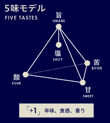 *5味+1とは、5味の「甘味、塩味、酸味、苦味、旨味」に+1の「辛味、食感、香り」が加わることで、立体的で奥行きがある料理が出来上がるロジックのこと。