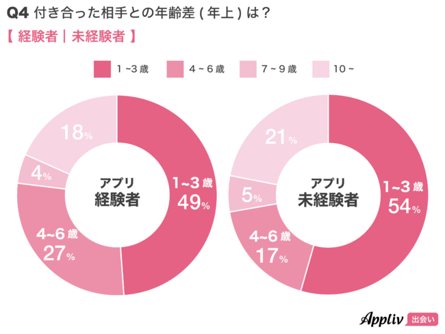恋人との年齢差、マッチングアプリ利用経験と関係なし