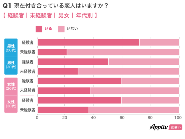 「Appliv出会い」ではアンケート調査サービスを通して、20代30代の未婚男女400人を対象に、恋愛経験に関するアンケート調査を実施いたしました。