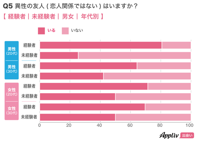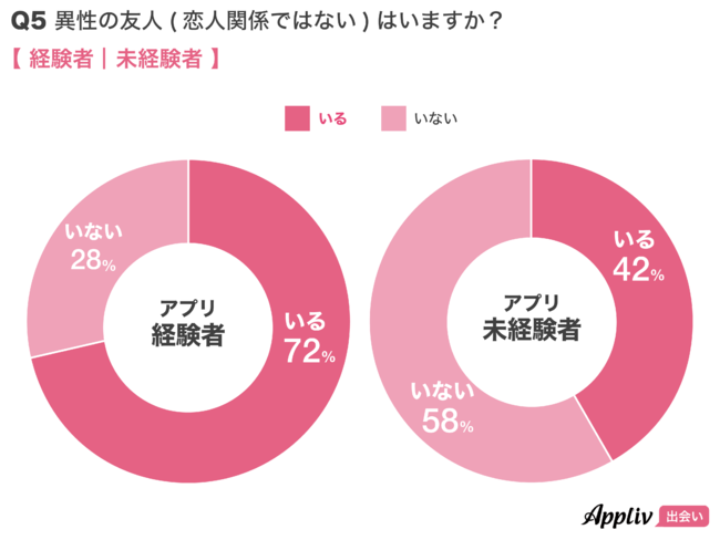 マッチングアプリ経験者の7割が「異性の友人いる」、未経験者の約2倍