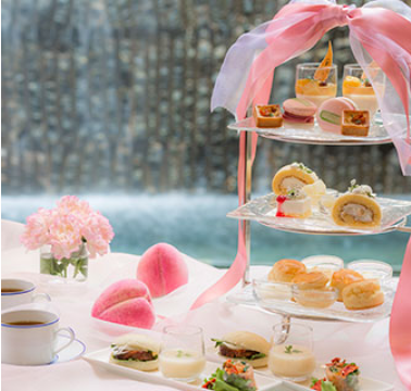 7月からのアフタヌーンティーは皆さまお待ちかねのピーチが登場します。かわいいミニサイズのクリームソーダ付き。夏を感じるセイヴォリーとももをたっぷり使用したスイーツをお愉しみください。