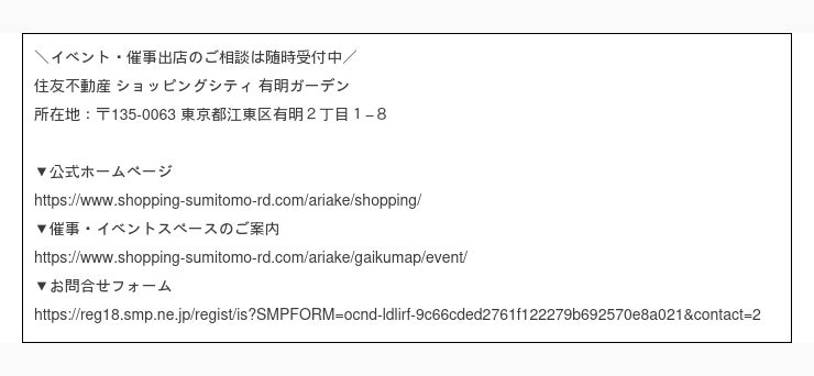 URL:https://www.shopping-sumitomo-rd.com/ariake/shopping/