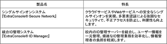 「学校環境に特化-アカウント管理とアクセス認証『ExtraConsole(R)シリーズ』」と題し、以下のような製品を展示します。