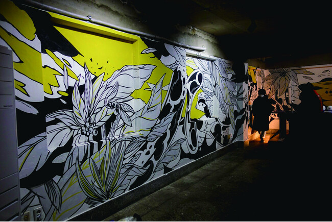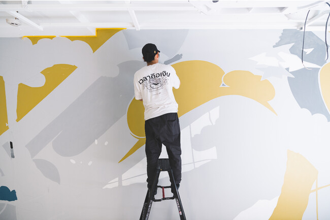 WOK22は2008年の活動開始以来、〈STUSSY〉や〈Adidas〉といったグローバルブランドから博多人形、福岡の小石原焼きといった伝統工芸まで多岐にわたるコラボレーションワークを手がけ、国内のみならずタイや韓国など海外での壁画制作やライブペインティングを行う依頼が引も切らない人気作家です。