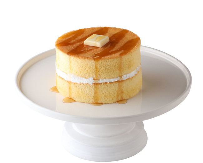北海道産バターをトッピングした、しっとり・ふんわり食感のスフレパンケーキです。『スフレ』とは「ふくらんだ」という意味で、「ふわふわした食感」のことを指し、パンケーキに膨らむ要素を入れたものが「スフレパンケーキ」と呼ばれています。今回のスフレパンケーキは、口当たりのふんわり感をお楽しみいただけるように焼き方をこだわりました。バターの塩味がケーキの甘さと程よくマッチしたシンプルで飽きの来ない味わいです。別添えのメープル風シロップをお好みでかけてお召し上がりください。