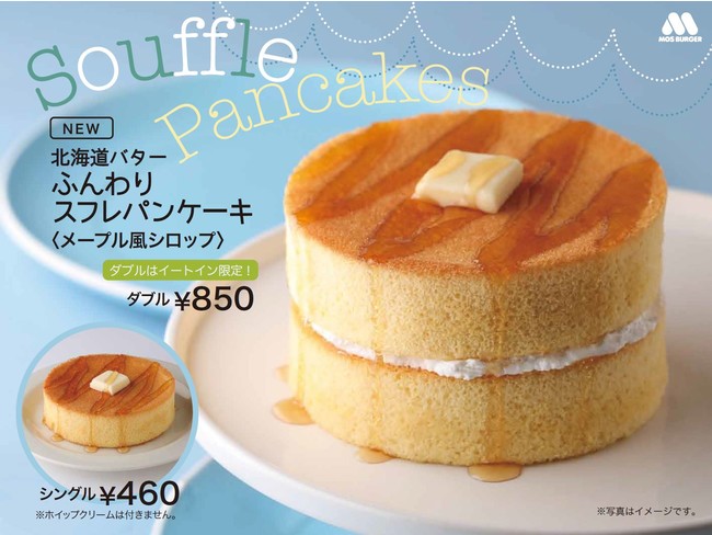 今回、「モスバーガー&カフェ」のスイーツメニュー強化を目的に、「北海道バター ふんわりスフレパンケーキ<メープル風シロップ>」を発売します。ティータイムはもちろん、モーニングとしてもおすすめの商品です。また、店内飲食専用として、スフレパンケーキを2枚重ねた、複数人で シェアしてもお楽しみいただけるダブルもご用意しました。また今後は、期間限定のアレンジ商品の販売も予定しています。