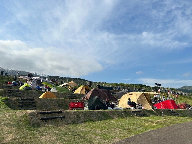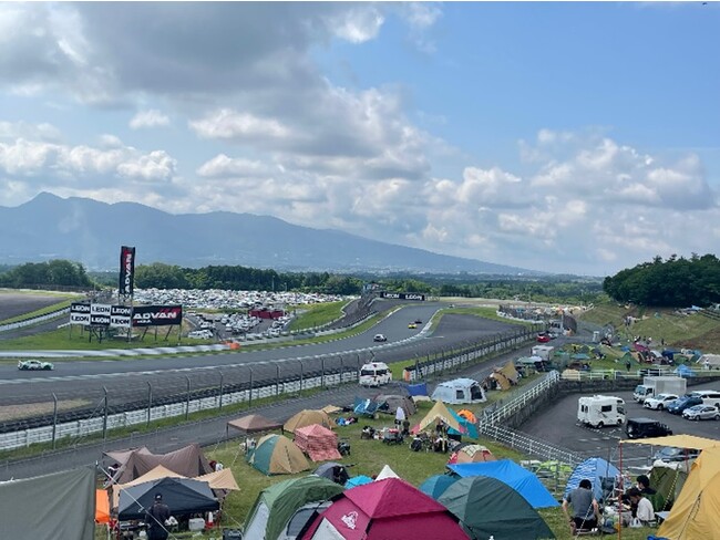 富士スピードウェイの場内はテントを張りキャンプが出来る事も特徴で、ダンロップコーナーや、パナソニックコーナー付近など各エリアは、多くのサーキットキャンパーがテントを張り、レース観戦を楽しんでいます。