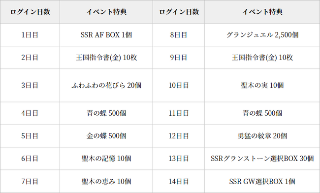 ※イベントの注意事項については、グランサガ公式サイトのお知らせ( https://forum.gransaga.jp/#/view/2/787 )をご確認ください。