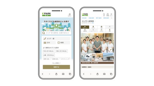 EPARK歯科メディアは、全国約6.6万件(※1)の歯科医院情報を掲載する歯科医院検索・予約メディアです。年間アクセス数は約1億回(※2)にのぼり、年間約200万人(※3)の患者さまが実際に予約を行っています。EPARKグループは累計会員数約5,860万人(※4)を突破し、1つのアカウントで歯科・グルメ・エステなど全サービスを利用することができます。患者さまは、「今日予約可」などの条件や医院情報、口コミを参考に、自分に合った歯科医院を探して簡単に予約することができます。医院さまは、歯科医院を探しているユーザーに直接アプローチでき、患者さまの増加やオンライン上での認知拡大につなげることが可能です。また、2024年春にはEPARK歯科のメディア掲載プランを改定し、従来の成果課金型モデルから月額固定制へと料金体系を一新しました。これにより、予約件数に応じて費用が変動し、毎月の広告費が予測しにくかった課題を解消し、医院さまが安心してご利用いただける仕組みを整えました。EPARK歯科メディアは、患者さまと医院さまの円滑なマッチングを通じて、誰もが適切な歯科医療を受けられる社会を目指しています。