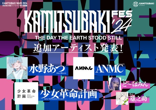2024年8月8日(木)に開催される、KAMITSUBAKI STUDIOによる音楽フェス「KAMITSUBAKI FES ’24 THE DAY THE EARTH STOOD STILL」に、水野あつ・ANMC・少女革命計画の追加出演が決定いたしました。さらに、当日は雄之助・ど~ぱみんがDJアクトとして出演いたします。