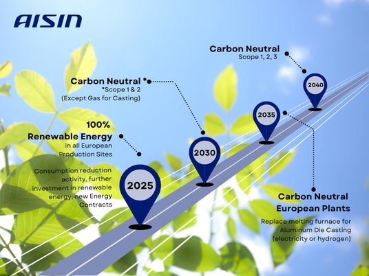 アイシンは、社会やステークホルダーに提供する価値の1つとして「持続可能な環境を未来へ」を掲げています。これからもカーボンニュートラル実現に向けて、サプライチェーン全体で取り組みを推進していきます。