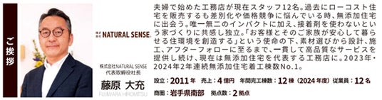 今回の視察先は、岩手県南部を商圏とし、2年連続で「無添加住宅」着工棟数No.1を達成した株式会社NATURAL SENSEです。