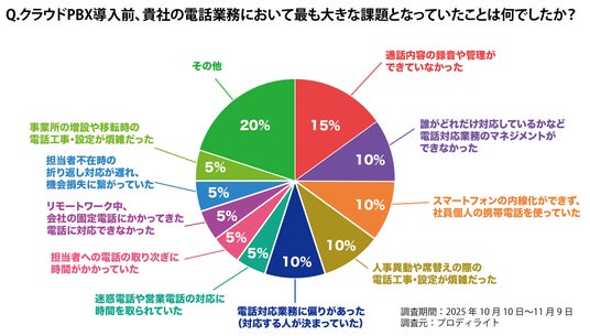 「その他(20%)」には「社内連絡用と社外にいる時用の2台持ちになっていた」「PBXの保守管理」「料金」「管理画面の不便さ」など様々な回答がありました。