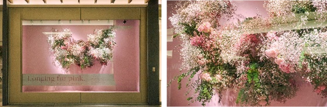 テーマ「Longing for Pink. 花が咲くように、新しい季節を開いていこう。」にあるよう、 春の訪れの高揚感と、ピンクという色に憧れを抱く気持ちを表すウィンドウデザインです。 2024SS OPENING DAYSのテーマカラーでもあるピンクのお花が咲き誇るフラワーオブジェクトは、 生花から展示をし、日に日にドライフラワーになっていく様子もご覧いただけます。また、展示期間中にお花が増え、 形が変化します。作品そのものが、ひとつの生命体のように育って行く唯一無二の世界観をお楽しみください。