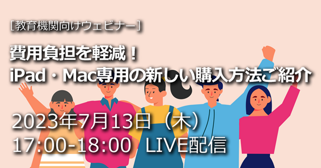 本ウェビナーでは、教育現場で使うiPad・Mac導入時に費用負担を軽減できる、新しい購入方法の選択肢をご紹介します。オンライン開催ですので、インターネットに接続できるPC、もしくはスマートフォン・タブレット端末があればどこからでもご視聴可能です。お気軽にご参加ください。