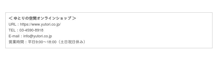 公式オンラインショップ会員登録:https://www.yutori.co.jp/entry/kiyaku.php