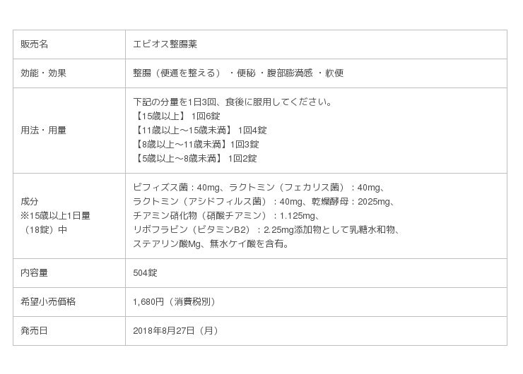アサヒグループ食品株式会社(本社 東京、社長 尚山勝男)は、天然素材の乾燥酵母(ビール酵母)から生まれた「エビオス」ブランドの整腸薬として、便秘・軟便の改善や整腸をサポートする『エビオス整腸薬』(指定医薬部外品/乳酸菌整腸薬)を8月27日より全国で発売します。