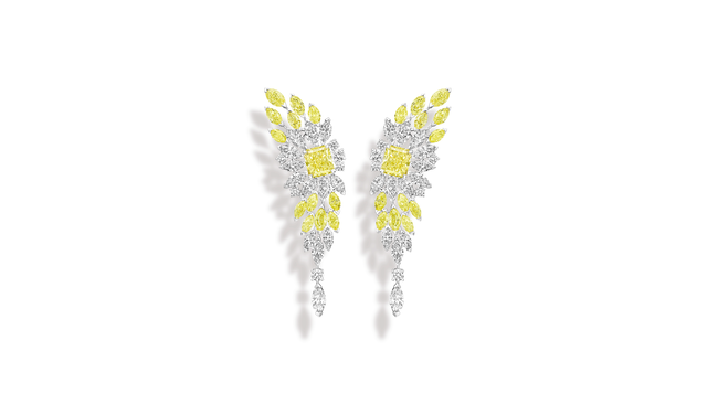 アメリカの女優で歌手のソフィア・カーソンは、ペアシェイプのダイヤモンドを配した美しいハイジュエリーのブレスレットに、イエローダイヤモンドが輝くイヤリングとリングを組み合わせて登場しました。