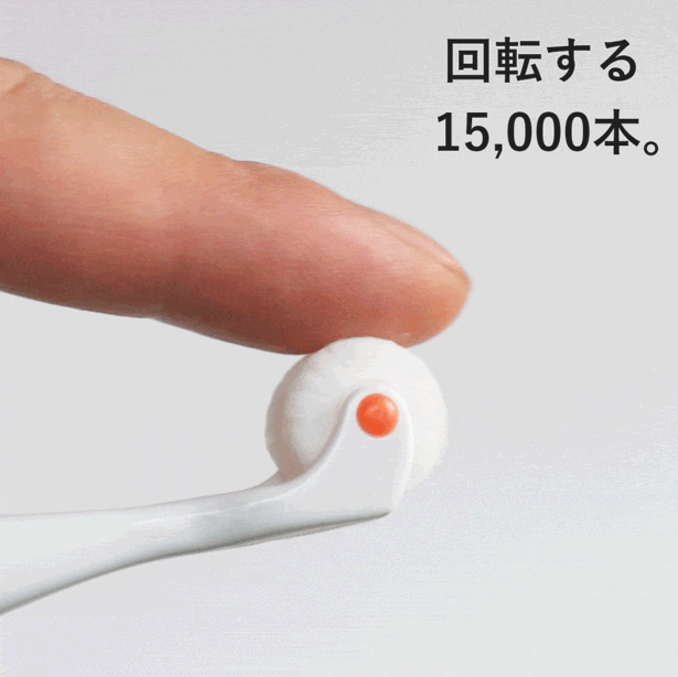 一般的な歯ブラシの20本分ともいわれる15,000本のブラシを、一つひとつ手作業でロール状にしています。0.076mmという髪の毛よりも極細毛が、歯垢を絡めとります。