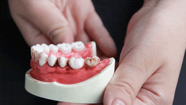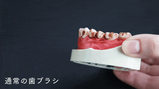 通常の歯ブラシでは表面は取れるものの、どうしてもスキマや根本の細かい溝に汚れが残ってしまっています。